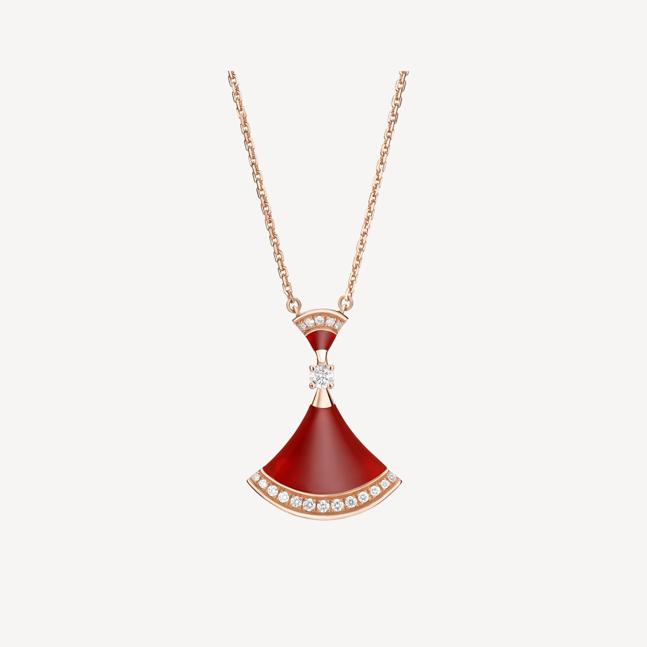 Rose Gold Red Agate Fan Pendant Necklace