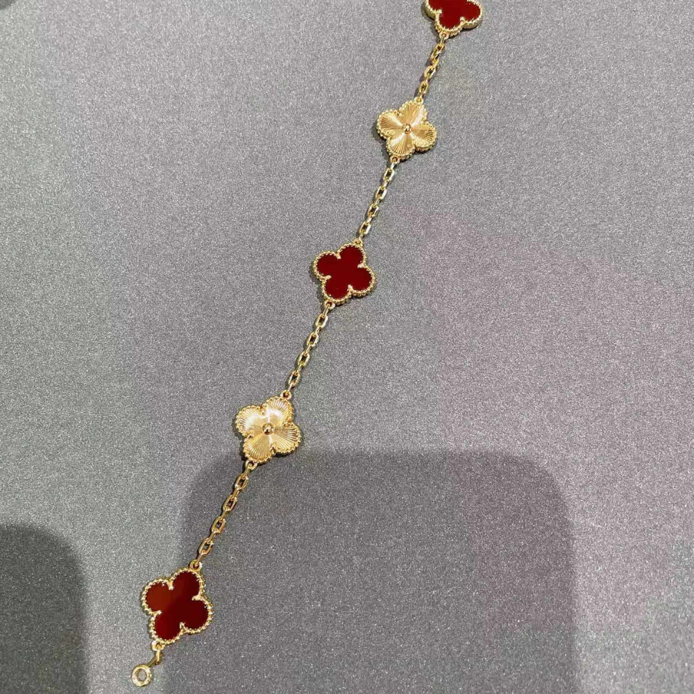 The bracelet features refined four-leaf clover motifs arranged along a delicate chain, creating a graceful and feminine look. With a total length of approximately 7.48 inches, it fits comfortably on most wrists and is perfect for wearing alone or layering with other bracelets.