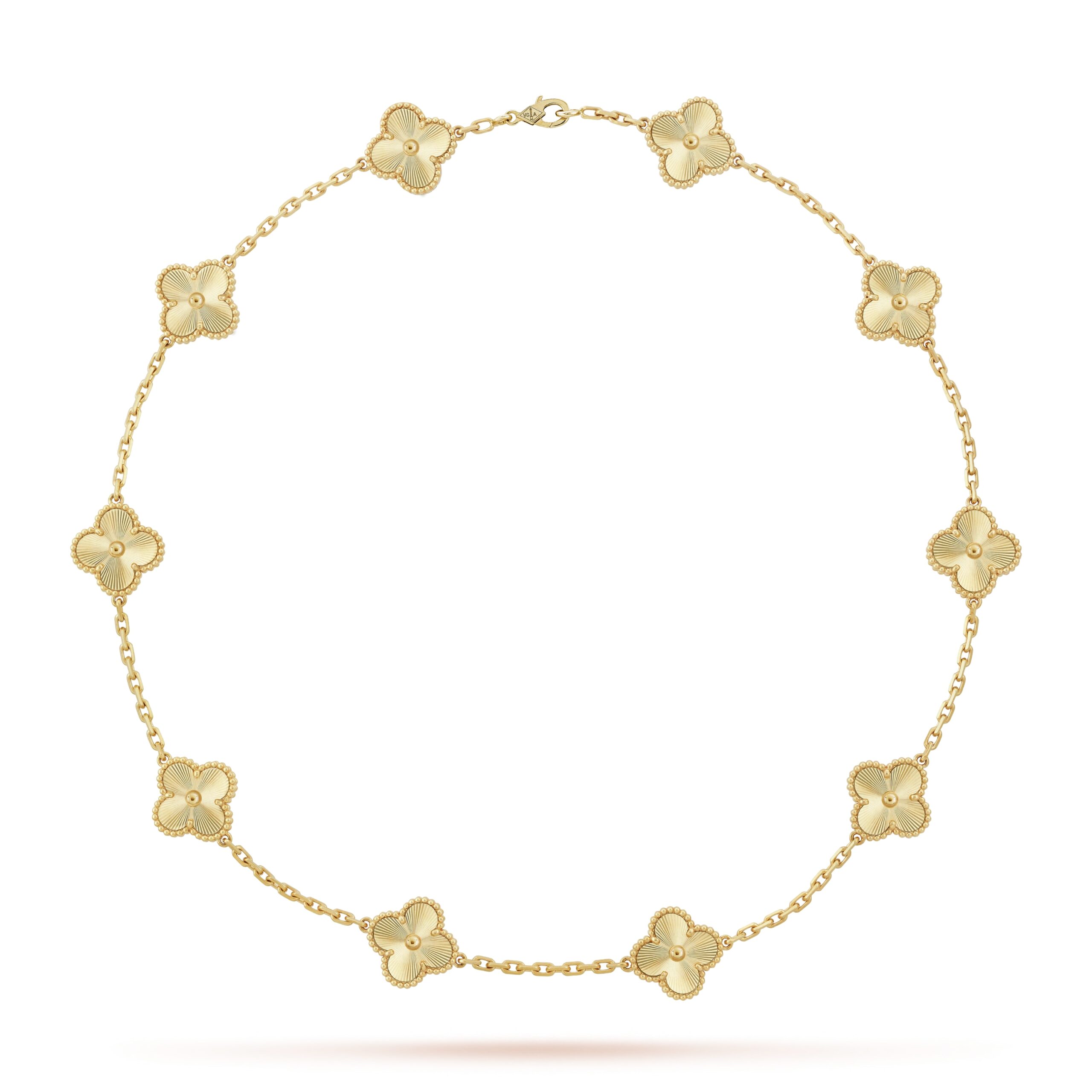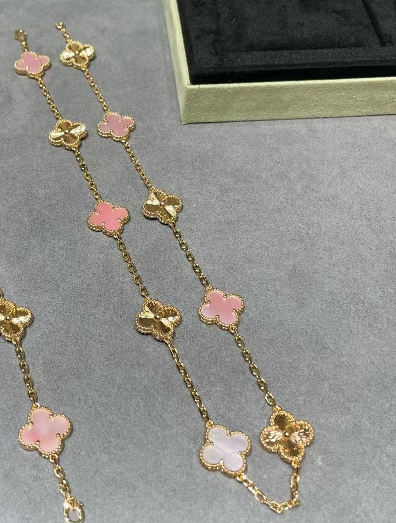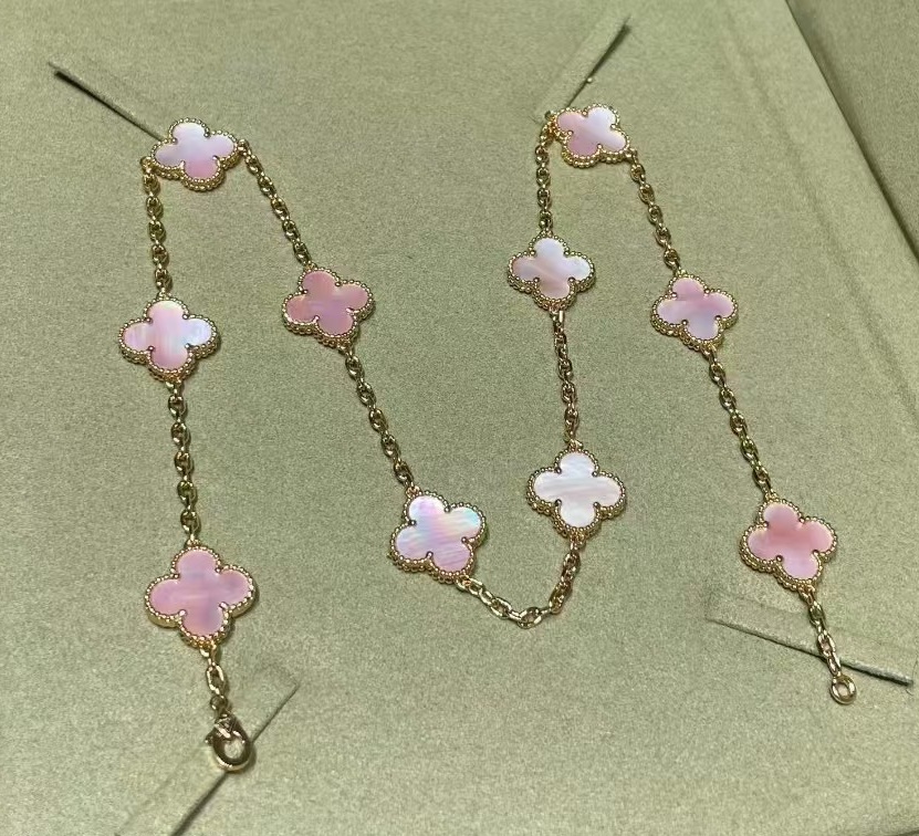 Designed with multiple clover motifs and natural stone options, symbolizing luck, elegance, and everyday luxury.