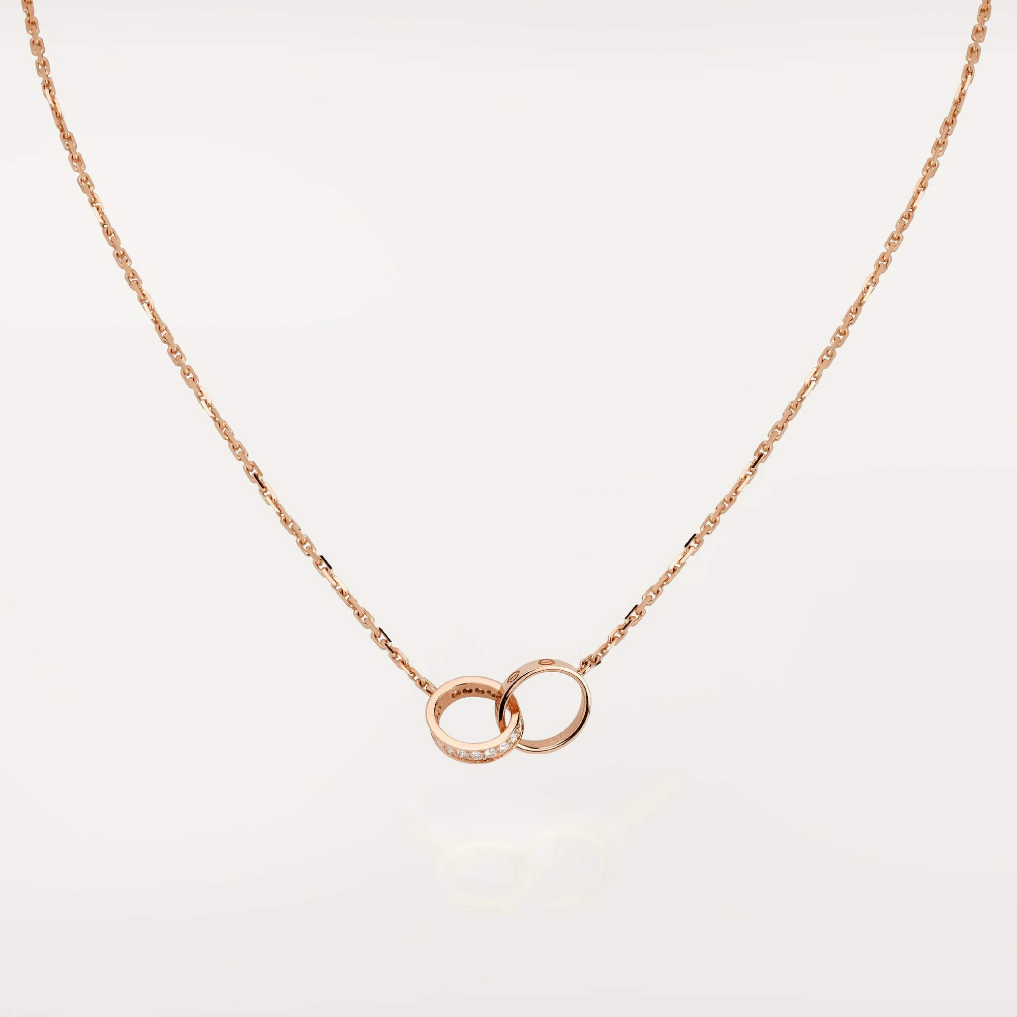 18K gold-plated interlocking double ring necklace with cubic zirconia accents and a clean, modern design.
