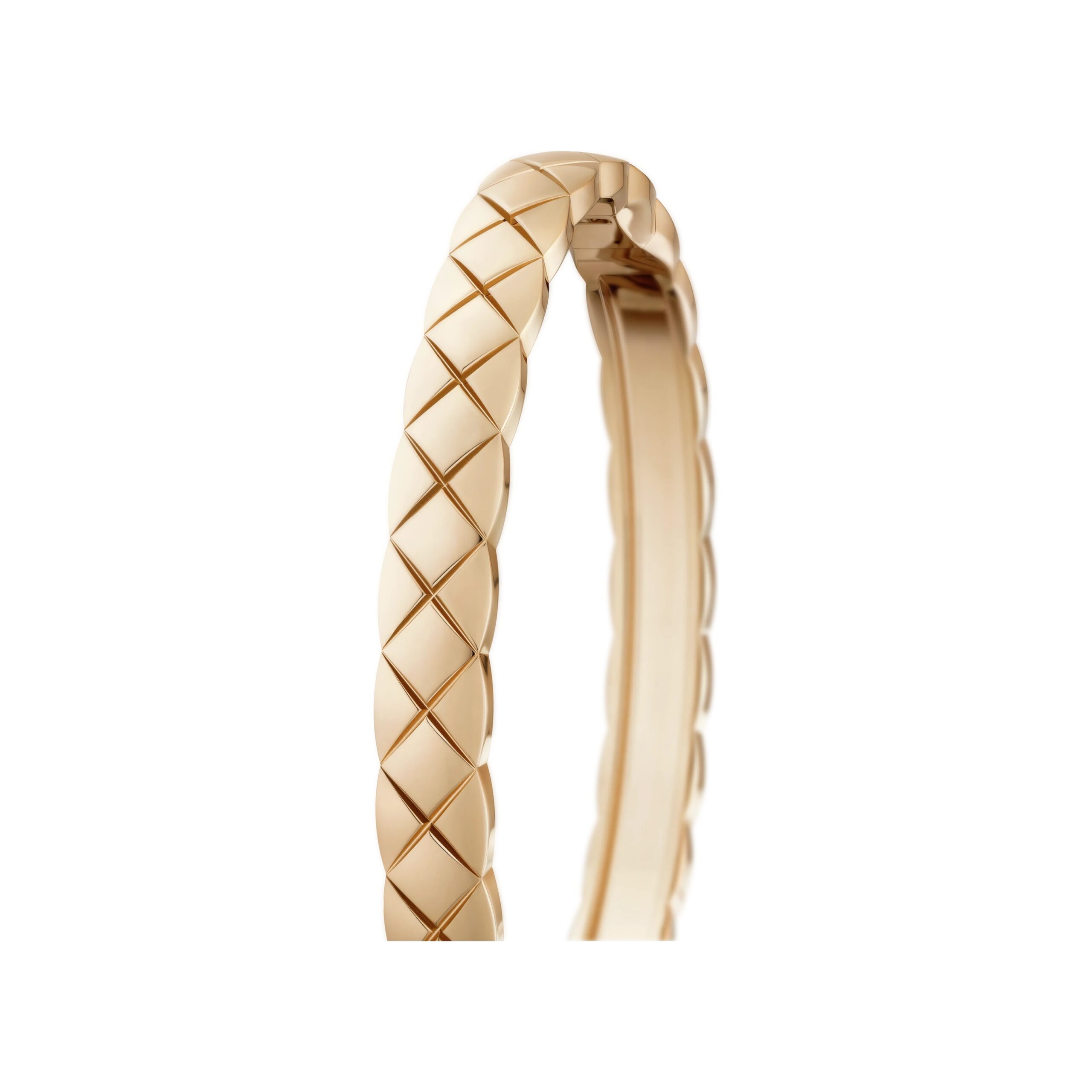 The gemstone-free quilted surface highlights pure lines and balanced proportions, making it easy to wear alone or stack with other bangles.