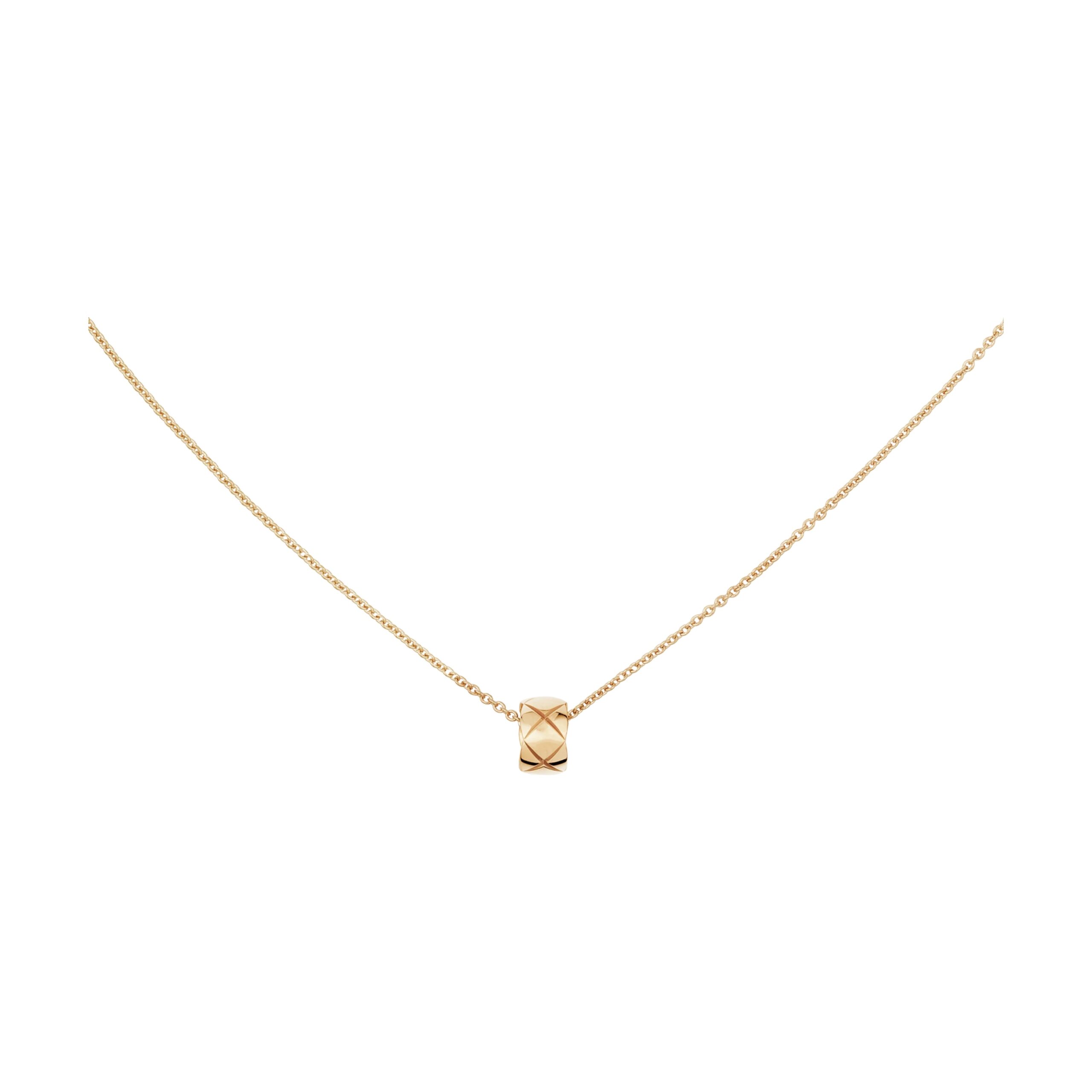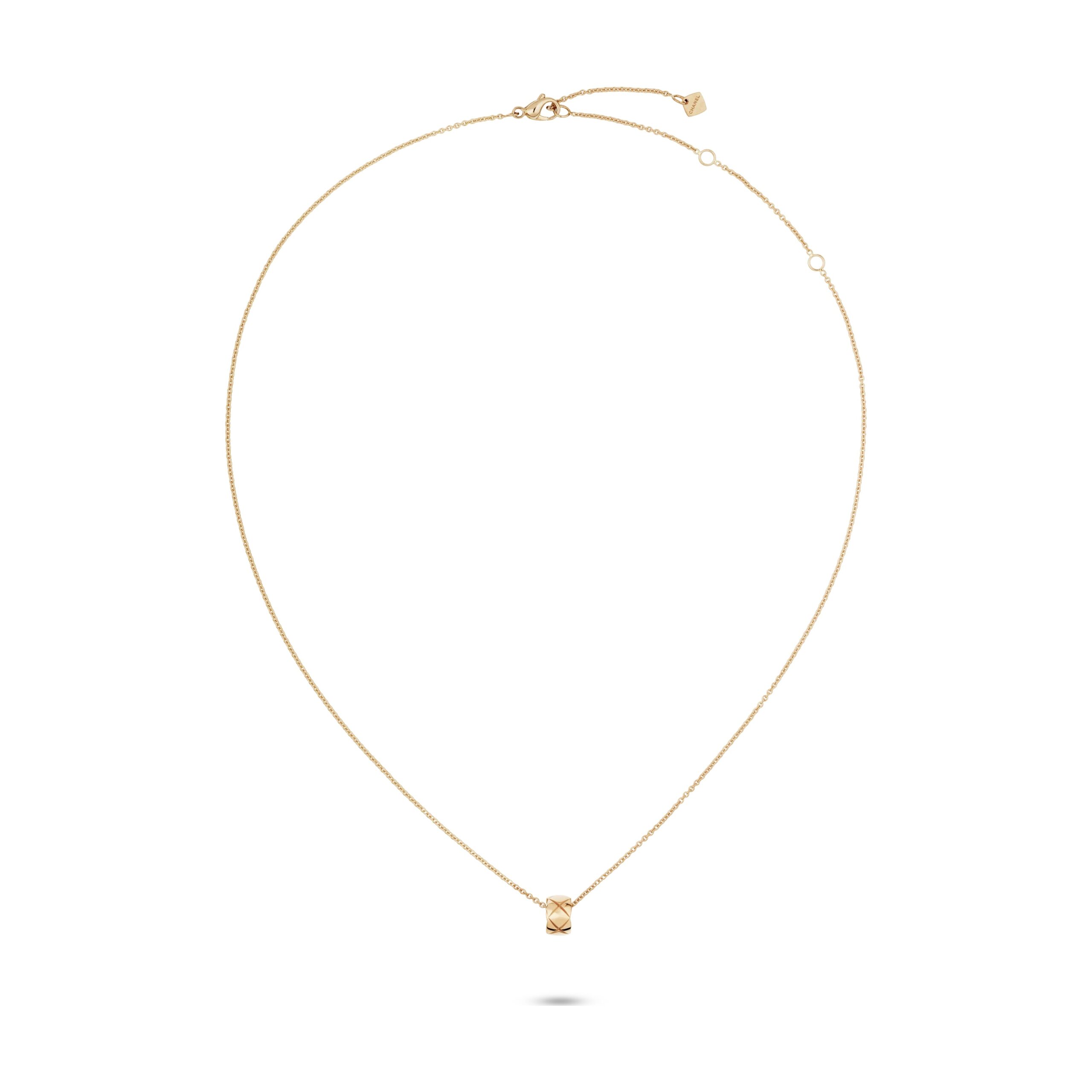 18K gold-plated quilted pendant necklace with adjustable 15–16.14 inch chain.