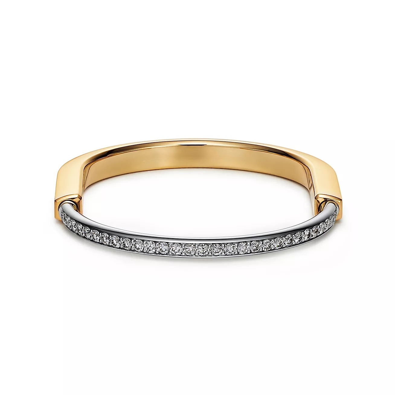 A modern lock bracelet crafted from durable V gold with 18K gold plating.